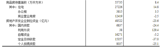 1—4月份,房地產(chǎn)開發(fā)企業(yè)房屋施工面積818588萬(wàn)平方米,同比持平。其中,住宅施工面積577692萬(wàn)平方米,同比下降0.1%。房屋新開工面積39739萬(wàn)平方米,下降26.3%。其中,住宅新開工面積28877萬(wàn)平方米,下降28.4%。房屋竣工面積20030萬(wàn)平方米,下降11.9%。其中,住宅竣工面積14662萬(wàn)平方米,下降11.4%。