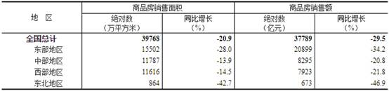 1—4月份,商品房銷售面積39768萬(wàn)平方米,同比下降20.9%;其中,住宅銷售面積下降25.4%。商品房銷售額37789億元,下降29.5%;其中,住宅銷售額下降32.2%。