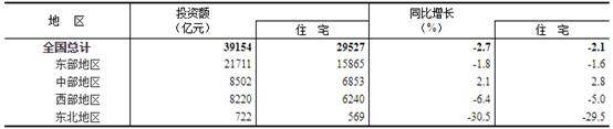 1—4月份,全國(guó)房地產(chǎn)開發(fā)投資39154億元,同比下降2.7%;其中,住宅投資29527億元,下降2.1%。