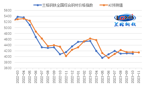 圖5 蘭格|騰景鋼鐵綜合價格指數(shù)AI預(yù)測(元/噸)