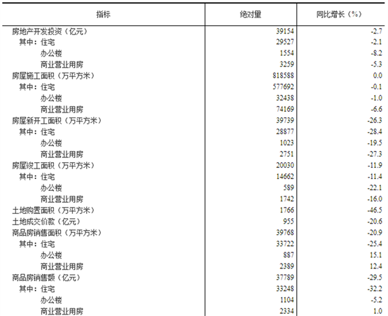 1—4月份,房地產(chǎn)開發(fā)企業(yè)房屋施工面積818588萬(wàn)平方米,同比持平。其中,住宅施工面積577692萬(wàn)平方米,同比下降0.1%。房屋新開工面積39739萬(wàn)平方米,下降26.3%。其中,住宅新開工面積28877萬(wàn)平方米,下降28.4%。房屋竣工面積20030萬(wàn)平方米,下降11.9%。其中,住宅竣工面積14662萬(wàn)平方米,下降11.4%。
