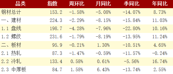 2. 盤線庫存下降速度有所加快,螺紋鋼庫存下降速度有所放緩;熱軋卷板庫存由升轉(zhuǎn)降,冷軋庫存由降轉(zhuǎn)升,中厚板庫存上升速度略有放緩