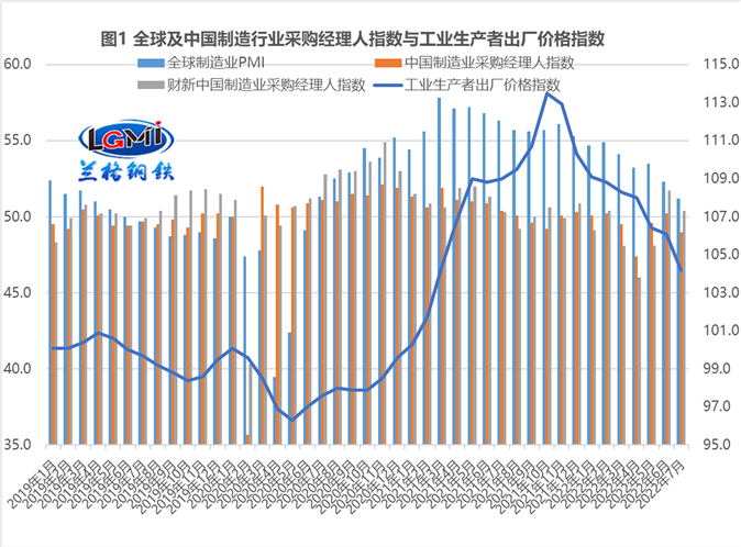 隨著國外大宗商品的高位回落和國內(nèi)保供穩(wěn)價政策的效果持續(xù)顯現(xiàn),7月份PPI環(huán)比由平轉(zhuǎn)降,同比漲幅繼續(xù)保持回落態(tài)勢(詳見圖1),對于國內(nèi)制造企業(yè)來說,雖然原材料價格的持續(xù)回落使得國內(nèi)制造企業(yè)的成本壓力得到了緩解,但由于部分地區(qū)疫情有所反復(fù),制造業(yè)用鋼需求呈現(xiàn)短期承壓的態(tài)勢。