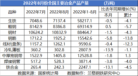表1 2022年全國主要冶金產(chǎn)品產(chǎn)量